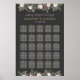 Florais suaves em tons rosados em aquarela sobressaem-se contra um fundo dramático de carvão escuro neste elegante plano de assento de casamento. "Celebração de Casamento em Homenagem" aparece em escrita leve acima dos seus nomes e data. O contraste cria um visual impressionante e moderno com uma borda romântica. Totalmente personalizável.