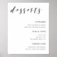 Sinal de pôster de menu de sobremesas de casamento personalizado com design moderno em preto e branco.