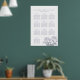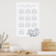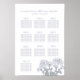 Desenho botânico de flores de crisântemo azul-cinza e flores brancas para cartaz de plano de mesa 10 no casamento. Edite este gráfico de assentos dos convidados para o jantar formal do seu casamento com os nomes dos seus convidados. Perfeito para um casamento temático de jardim floral branco, cinza e verde, casamento temático floral, noivado ou aniversário. Desenho e pintura artística abstrata moderna original de Sarah Trett. www.sarahtrett.com para www.mylittleedenweddings.com