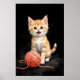 Poster Playful Kitten Cat with Yarn Watercolor Print