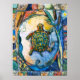 Irmão tartaruga se move através das zonas úmidas em sua jornada, limitada por símbolos da natureza. Da série Crianças da Terra de P. Allingham Carlson. Pôster.