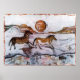 Cavalo Petrolífero, dois cavalos correm há muito tempo por uma planície para serem capturados para sempre neste desenho primitivo da caverna. Pôster.