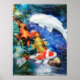 Natação de peixe de cor suave através das águas de um lago de jardim, Nishikigoi (koi) são símbolos de afeto ou amor. Poster/impressão.