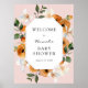 Dê boas-vindas aos seus convidados para a festa do bebê com este lindo cartaz, apresentando uma moldura dourada rodeada por flores de laranjeira, folhagens e clementinas. Adicione o nome da convidada de honra, data da festa e texto de boas-vindas personalizado usando os campos fornecidos.