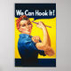 Possui uma poster de propaganda da guerra mundial antiga com uma reviravolta de crochê.