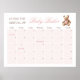 Adicione um momento divertido ao seu chá com este encantador sinal de jogo de calendário. Apresentando listras moles de aquarela, um ursinho de pelúcia vintage, e um roteiro elegante, convida os convidados a adivinhar a data de chegada do bebê — um doce apetite para tesouro após o grande dia.