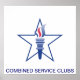 Poster pequeno com o logotipo "Star and Torch" CSC e o texto de Clubs de Serviço Combinado, destinado a exibição em podiums ou lecternos.
