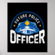 A design da polícia. Esta design de polícia engraçada lê o futuro policial. A polícia atrás da design da linha azul.