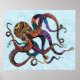 Ilustração desenhada à mão de um polvo psíquico neon. A ideia de presente de excelente para os quartos de criança ou para aquela pessoa de praia na sua vida. Personalize adicionando texto.