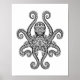 Este design de polvo único é decorado com espirais e padrões de pontos complexos. O padrão simétrico tem as oito pernas dele esticadas e os olhos estão olhando para frente. O corpo e os braços do polvo são constituídos por linhas delicadas que se unem para formar um padrão atordoante. Esta na moda é uma bela tomada desta estranha e maravilhosa criatura marinha.