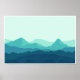 Uma paisagem plana simplista de um lago e montanhas.