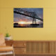 Uma vista tranquila do pôr do sol e da ponte. O sol só beija o Pacífico boa noite. Levado ao longo da Riverwalk no centro Astoria, Oregon