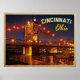 Uma vista noturna de uma ponte suspensa sobre o rio Ohio em Cincinnati.