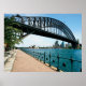 Caminhando pelo caminho que conduz por baixo da ponte de Sydney Harbor na Austrália. A paisagem urbana de Sydney atrás.