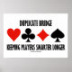 Os jogadores de ponte duplicados aproveitarão este poster com os quatro naipes de placa junto com a seguinte ponte, dizendo que será definitivamente um ponto de conversa na mesa da ponte e além: "Duplicate Bridge Keeping Players Smarter Longer".