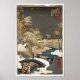 Pintura de arte vinda em cores de inverno que retrata uma velha vila e uma ponte na neve.