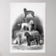 Ilustração clássica em preto e branco de três poodles e um chicote. Ilustração tirada de "Os Cães das Ilhas Britânicas" por J.H.Walsh publicada em 1878.