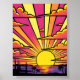Inspirada pelo espírito revolucionário de Warhol e Lichtenstein, esta poster desconstrói o pôr do sol tradicional e reconstrói-o com a ousada linguagem da Pop-arte. Usando cores saturadas, não tradicionais e técnicas gráficas como pontos do Ben-Day e contornos fortes, a cena transforma um espetáculo natural num pedaço de estilo produzido em massa legal. Isto é mais do que uma fotografia de um pôr do sol; é uma celebração da cor, da forma, e do movimento artístico que ousou ser diferente. Um imperativo para amantes da arte moderna e design ousada.