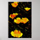Pintura digital de papoilas de cor clara contra fundo escuro.
