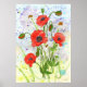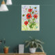 Cachorros vermelhos profundos e margaridas delicadas contra um fundo surreal. Da cor d'água original por Christine Hudson