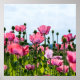 Esta design apresenta uma bela imagem de um campo de papoilas cor-de-rosa na floração. A cor brilhante das flores parece incrível contra o céu iluminado pelo sol.