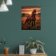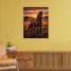 A magnificent poppy horse races across open fields where freedom meets vivid floral beauty. Realistic horse anatomy blends with scarlet poppy petals, flowing stems, bright leaves, and dynamic mane textures full of movement. Golden grasses, rolling hills, drifting petals, and glowing sunset skies create an uplifting countryside atmosphere rich with warmth and energy. This premium fantasy equine design adds bold elegance to living rooms, bedrooms, offices, or gift collections. Perfect for horse lovers, floral decor fans, and statement rustic interiors.