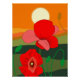 Papoila na ilustração do pôr do sol. Prado de Poppies. Papaver. Paisagem de papoila no fim da tarde, pouco antes do pôr do sol. Belas artes