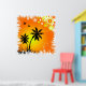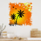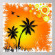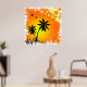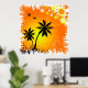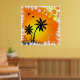 Ilustração tropical do pôr do sol com decoração de palmeiras em moldes brancos