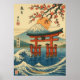 Poster Porta Torii japonesa e Monte Fuji com ondas