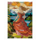 Esta vibrante trabalho de arte de vidro manchado representa uma bela mulher em um ornamentado, vestido fluente, seu cabelo comprido graciosamente enquanto ela se posiciona em uma paisagem rochosa. A mulher parece estar a olhar para uma vista de tirar o fôlego que inclui montanhas majestosas, um lago sereno e um céu dramático. O trabalho de arte é rico em detalhes, com painéis ousados e coloridos criando um contraste dinâmico entre a figura e a cena natural. O efeito do vidro manchado melhora a beleza da paisagem e a elegância da mulher, fazer-o perfeito para uma poster ou obra de arte que irradia beleza e tranquilidade.
