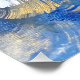 A pintura apresenta borboletas pretas delicadamente espalhadas sobre um fundo azul abstrato. Os tons azuis vão desde índigo profundo a azul-céu macio, criando uma atmosfera como sonho. As borboletas, estreladas em contraste, estão em várias posições — algumas em voo, outras em repouso — acrescentando um senso de movimento à composição. O fundo, texturizado com pinceladas e declives sutis, evoca um sentimento de profundidade e serenidade, enquanto as borboletas negras se destacam como figuras elegantes, misteriosas, trazendo um toque de contraste