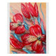 A pintura retrata flores vibrantes vermelhas colocadas sobre um fundo abstrato, de cor clara. As flores, com suas pétalas vermelhas ousadas, destacam-se com destaque, acrescentando um senso de calor e intensidade ao trabalho de arte. O fundo é uma mistura suave de tons leves, talvez bege, creme ou tons pastéis, criando uma atmosfera calmante e serena. A abstrato do fundo contrasta com as flores detalhadas, fazer-as como ponto focal da pintura.