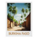 Step into the authenticity of Burkina Faso with this vibrant poster. A sunlit earthen street, adobe walls, tall palm trees, and an iconic mosque create a warm and immersive scene—perfect wall art for an exotic touch.