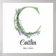 Um design romântico e elegante com letra monogramada emoldurada por eucalipto e lavanda pintados em aquarela. Personalizável e downloads digitais (png, jpeg, pdf). Este pôster de monograma da letra C será um acento personalizado perfeito para berçários, quartos e outros espaços.