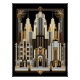 Esta imagem é produzida pela Ai. Eu adoro os resultados porque isso realmente faz um poster excelente. Uma paisagem urbana no estilo de deco de arte em cores pretas e douradas. Esta poster pareceria excelente enquadrada e pendurada numa parede em sua casa. Para todos os amantes do Art Deco.