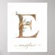 Pôster de Letra E Dourada Floral Aquarela Monograma