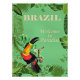Poster de viagens Vintage Brasil, Bem-vindo ao Paraíso, exuberante verde com pássaro tucano colorido.
