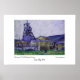 Um impressão/poster de uma pintura pastel macia original, de Judy Adamson, do equipamento de enrolamento e dos edifícios de pit top em The Big Pit, Blaenavon, Sudeste de Gales, Reino Unido, com ovelhas a pastorear nos campos circundantes.