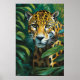 Um poster de retrato HD que retrata um Jaguar na Selva num estilo de pintura