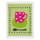 Poster met illustratie van kopje met stippen, kleur roze, groen