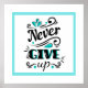 Este poster apresenta um fundo branco com acentos azuis aqua e bordas com texto preto. O texto diz "nunca desistir" com os filigramas. Personalizar este item ou comprar conforme projetado. imagem de estoque www.freepik.com