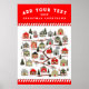 Design festivo de contagem regressiva de Natal com uma vila nevada de 24 casas de feriado que levam a uma casa de gengibre. Edite o texto para personalizar.