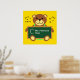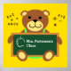 Personalize este pôster personalizado da sala de aula de um ursinho segurando quadro negro com o nome do professor e uma maçã. A cor do fundo também pode ser alterada.