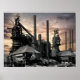 Um grande complexo de metal do último forno em vários palcos de degradação. Entrámos no palco industrial poste apocalíptico.