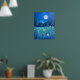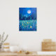 Poster em uma paisagem aquática de um campo de flores silvestres e uma floresta escura sob uma lua de cheio