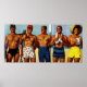 Poster com uma ilustração vintage dos anos 50 de homens em maiôs na praia. Legal!
