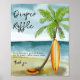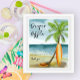 Bebê no Conselho! Chá de fraldas - perfeito para um chá de fraldas de verão. Tema da praia. A design de aquarela tem uma cena oceânica e de praia com surfboard, palmeira e chapéu de verão.