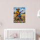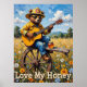 Esta pintura cativante apresenta um urso, um verdadeiro artista de campo com capacete de bombeiro e óculos de sol, profundamente imerso num espetáculo acústico de guitarra sobre uma velha roda de vagão de madeira. Um campo de flores silvestres coloridas o rodeia, e um pote de mel se senta por baixo de um céu brilhante, parcialmente nublado. A vibrante e texturizada escova cria uma atmosfera viva e entusiasmante, transmitindo perfeitamente a vibração "Love My Honey" deste concerto rural único.