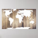 Póster Pranchas de Madeira Rústica Mapa Mundial Branco
