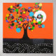 Árvore colorida com coração amoroso no tronco, com lua cheio e arte pontilhada